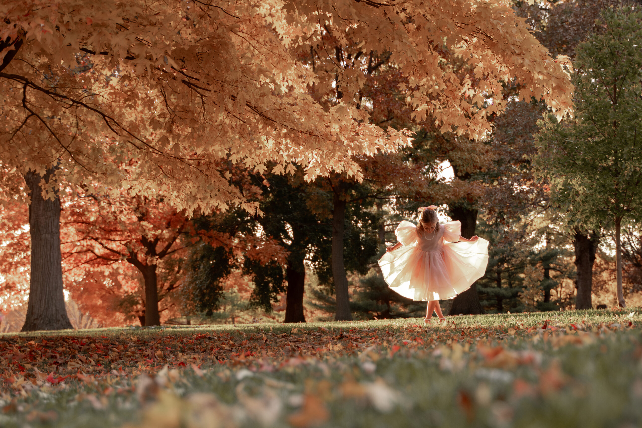 Some sessions feel like stepping straight into a fairytale, and this one was truly that kind of magic. Tucked up on a hill in Davenport’s East Village — with the river quietly flowing behind us and the trees bursting with the most unreal fall colors — we found the perfect little world for this photoshoot.